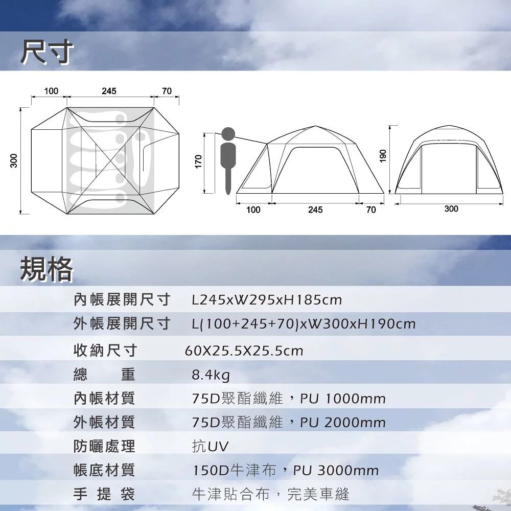 ● 外帳展開尺寸 |(100+245+70)x300x190cm