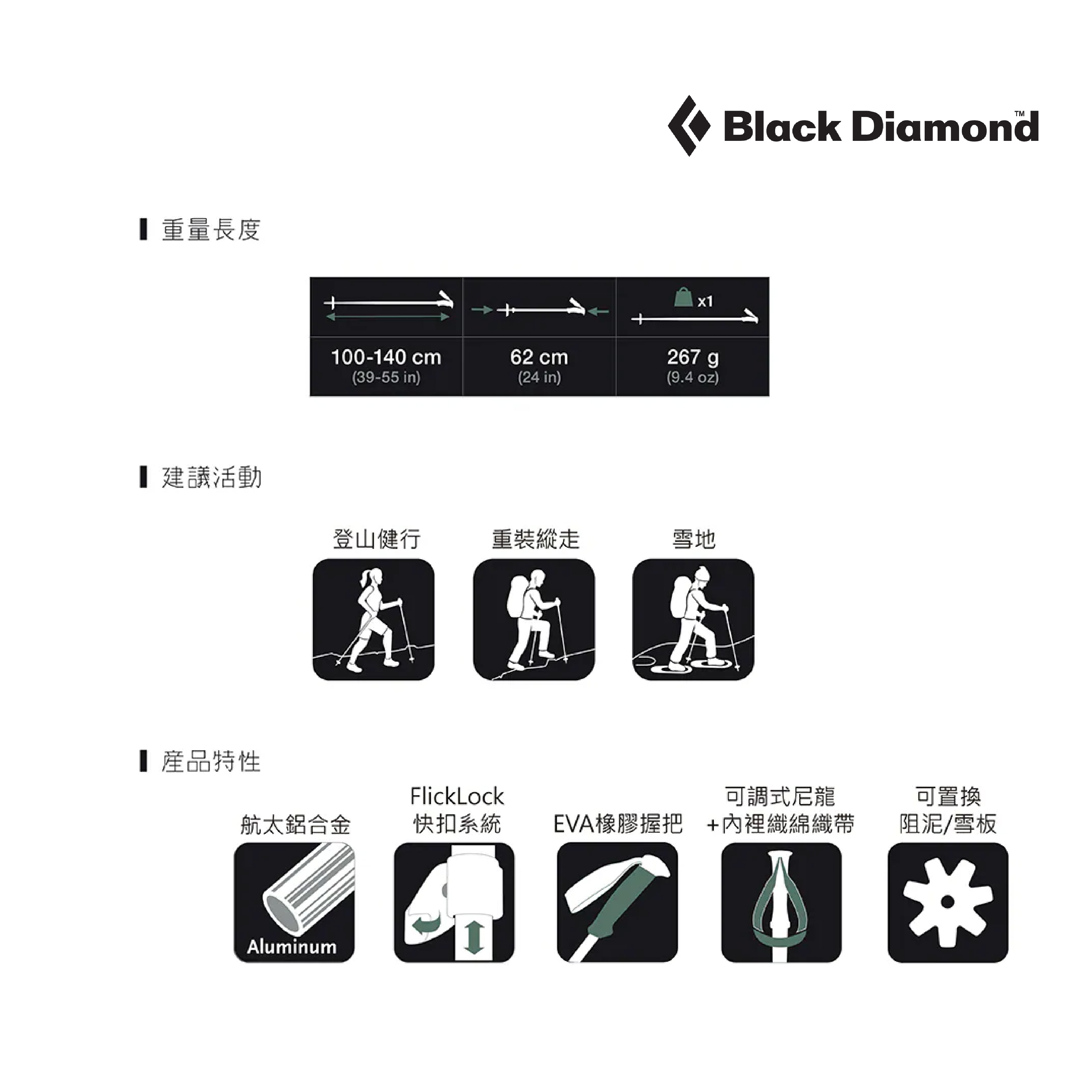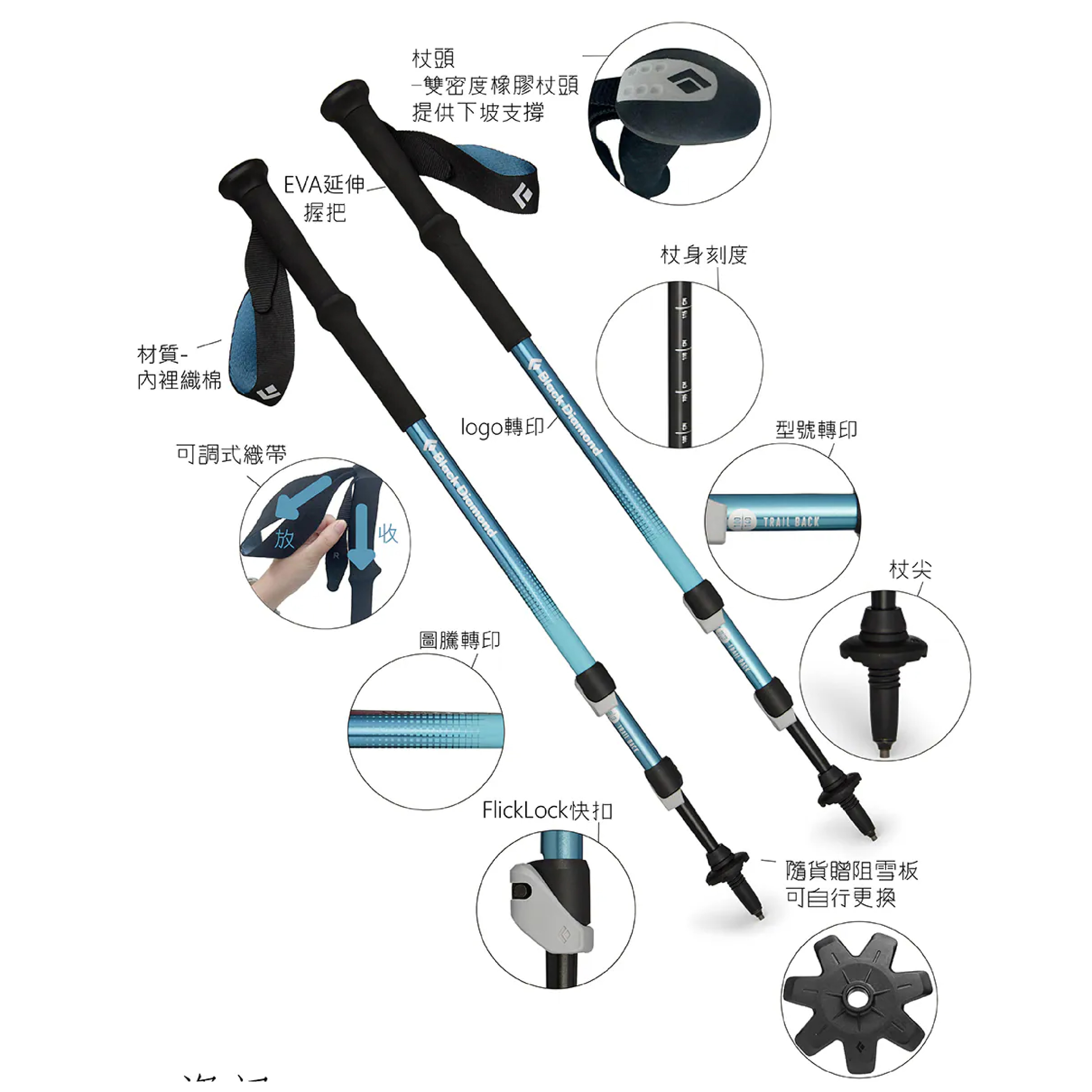 美國 Black Diamond TRAIL BACK TREK POLES 登山杖 戶外健走杖 1對/2支 MIT 台灣製造 公司貨