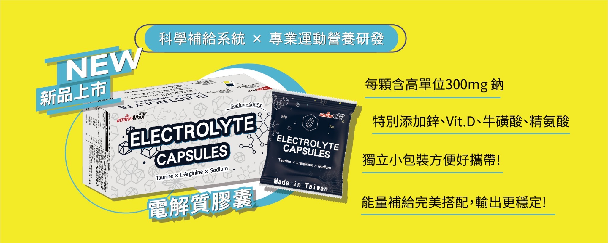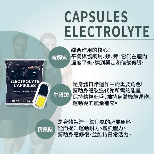 成份:氯化鈉、氯化鉀、L-精胺酸、磷酸鈣、牛磺酸、氧化鎂、葡萄糖酸鋅、維生素D3(辛烯基丁二酸鈉澱粉、蔗糖、L-抗壞血酸鈉(抗氧化劑)、中鏈三酸甘油酯、二氧化矽、維生素E(抗氧化劑)、維生素D3)。膠囊成分:羥丙基甲基纖維素、純水、鹿角菜膠、二氧化鈦、氯化鉀。