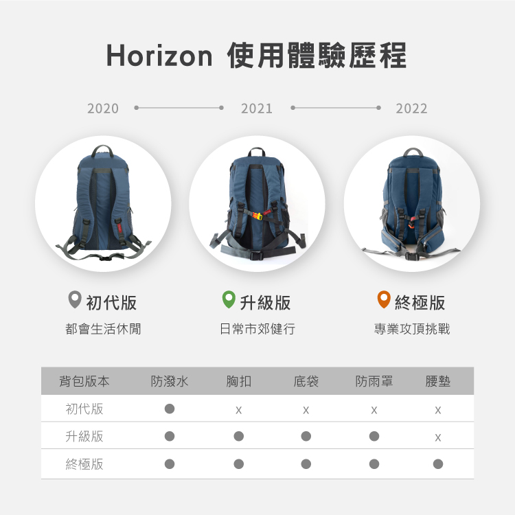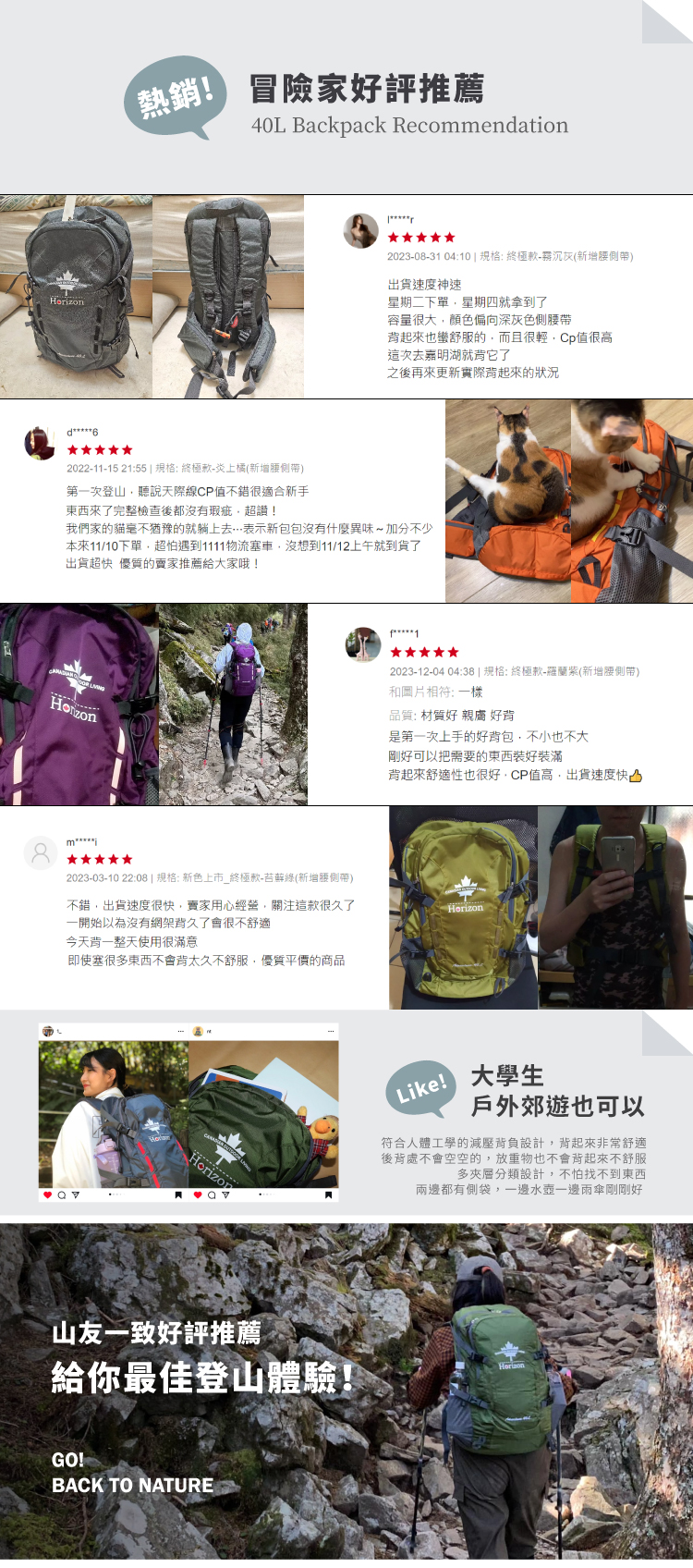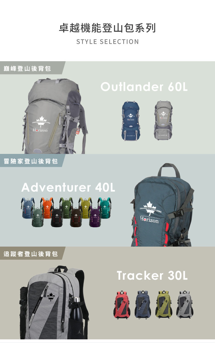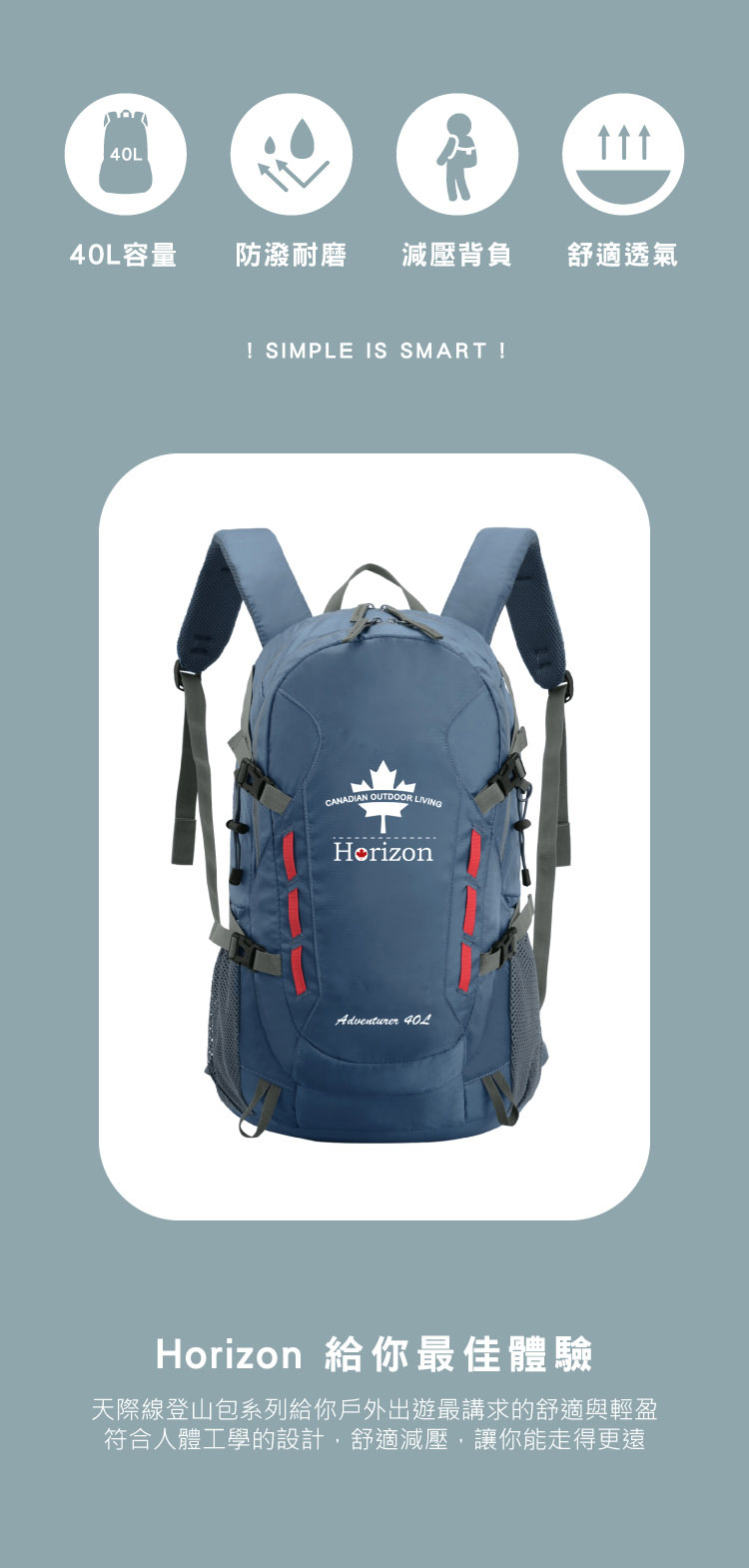 Horizon 天際線 熱銷千件的終極版 冒險家登山後背包 Adventurer 40L|多夾層設計│肩帶減壓設計│附專屬防雨罩