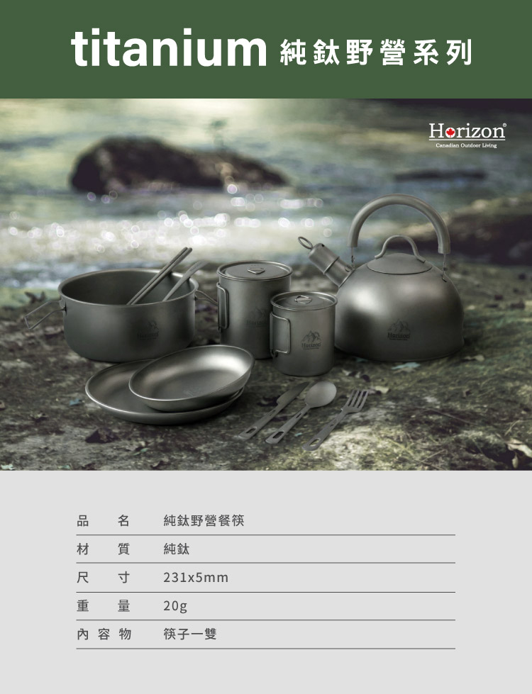 Horizon 天際線 純鈦戶外野營餐湯勺、野營餐筷