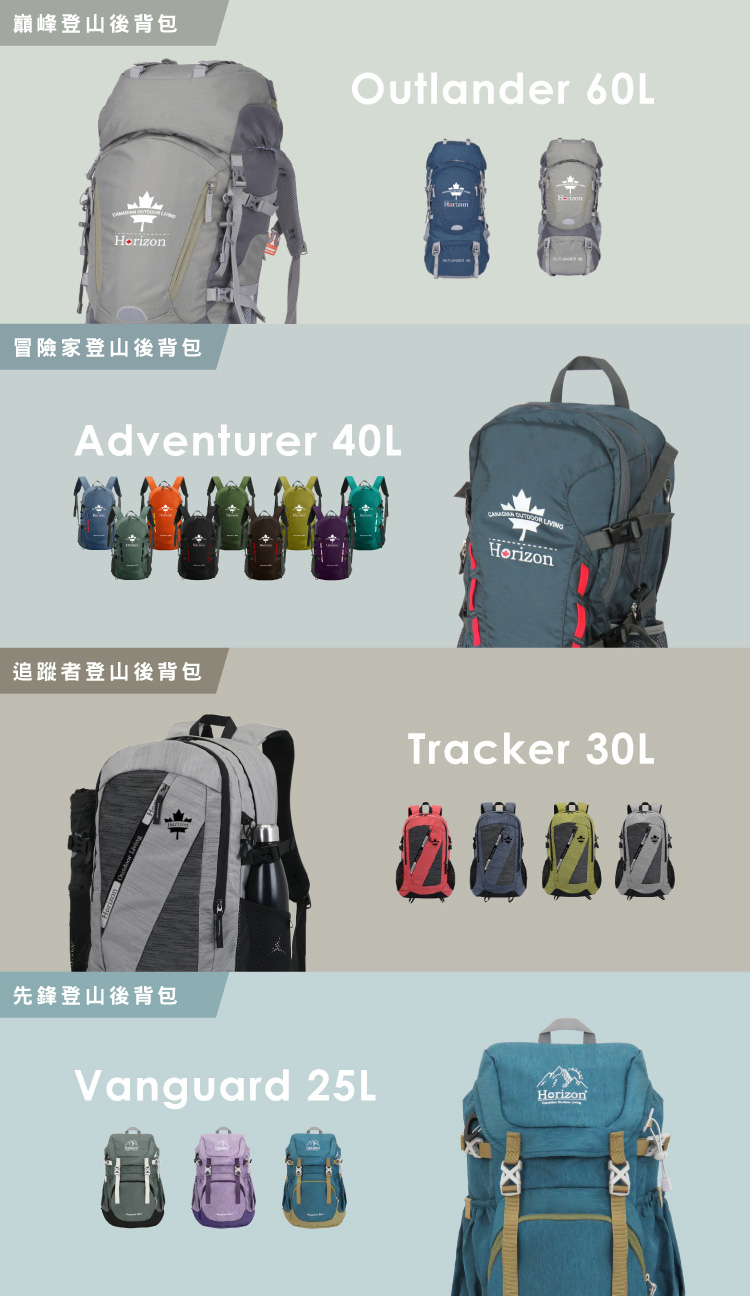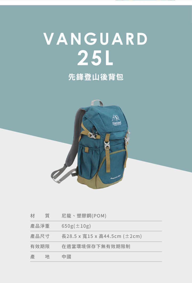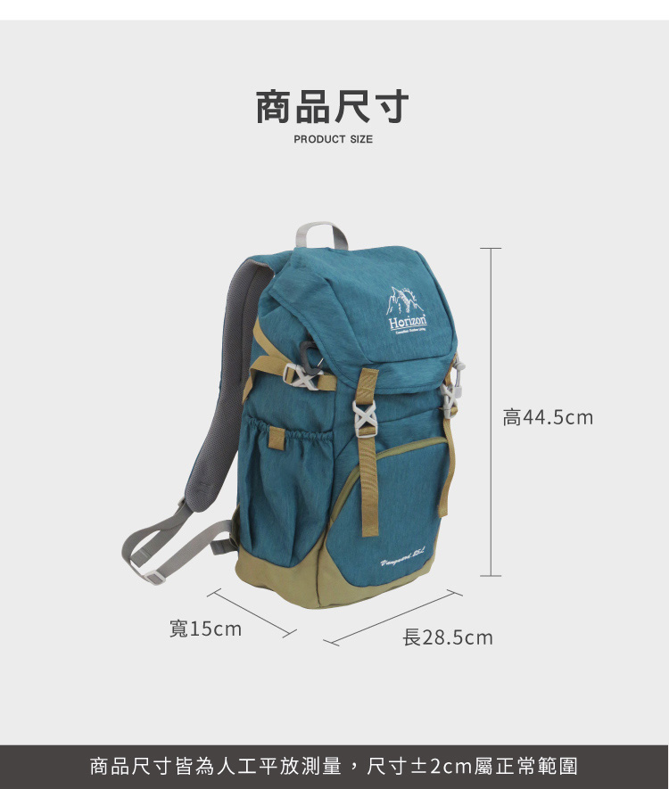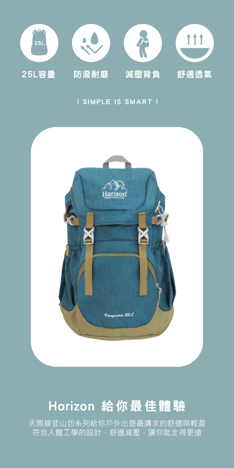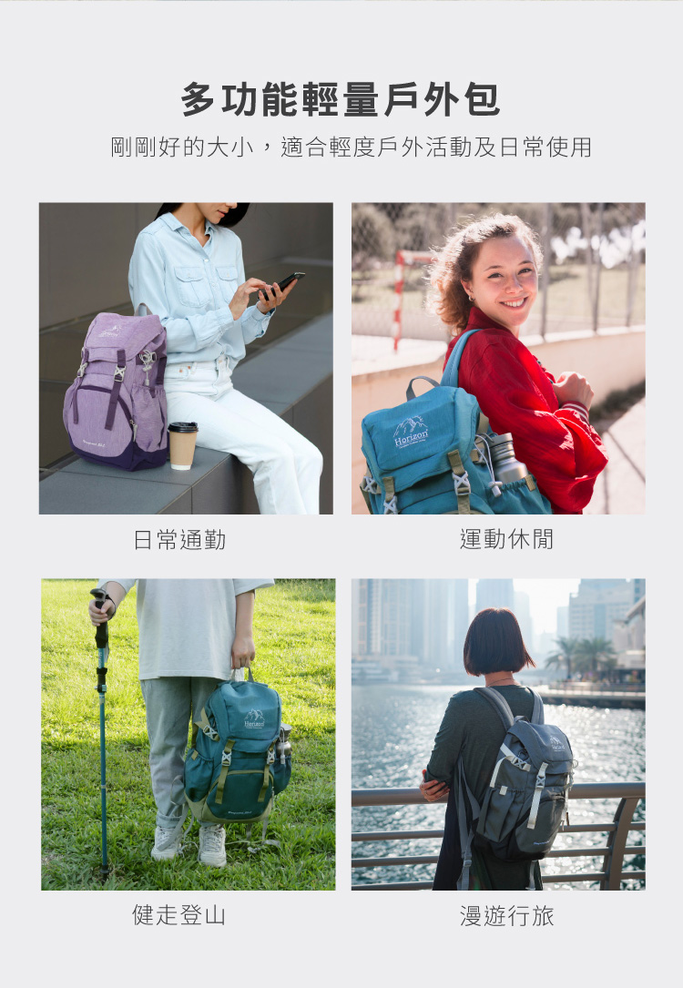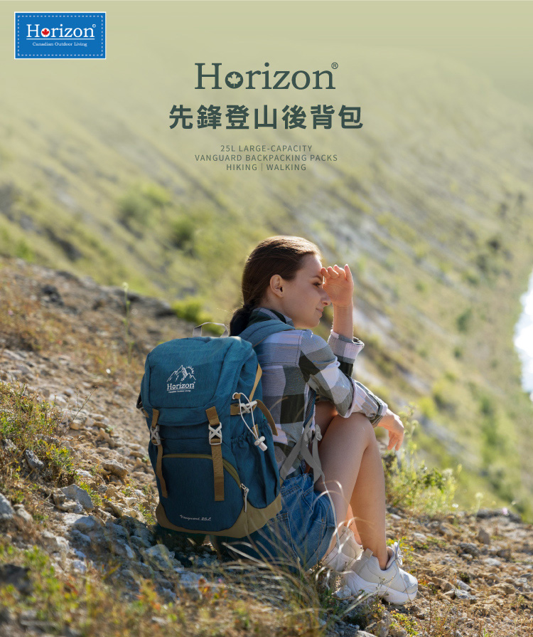 - 加拿大Horizon 先鋒登山後背包,25L容量,適合輕度戶外活動及日常使用,精選布料,防滑耐磨更耐用,防潑水機能,有效防止雨水滲透,背部3D彈力棉,透氣舒適又減壓,多夾層設計,收納更方便,安全胸扣/腰扣,平衡減壓,附贈品牌防雨罩,出外更安心。
