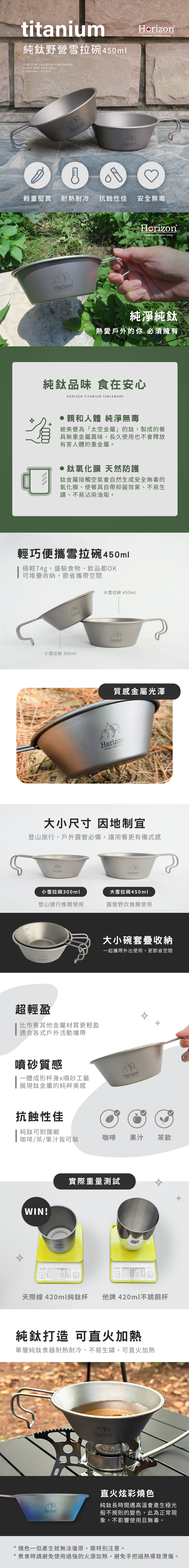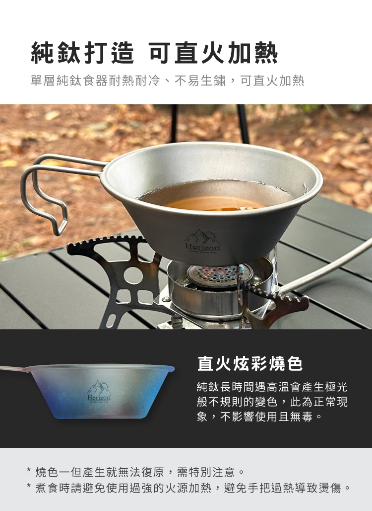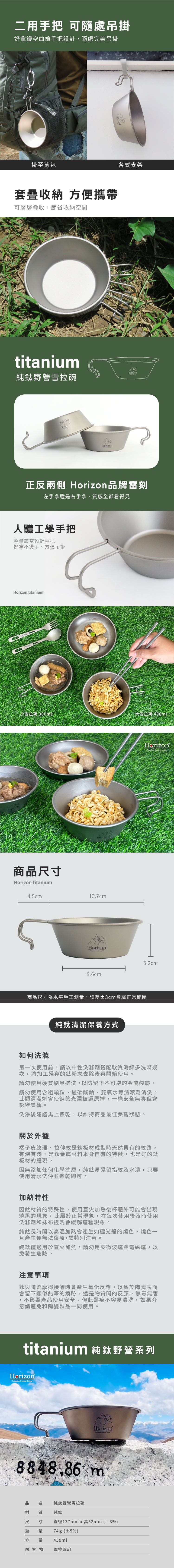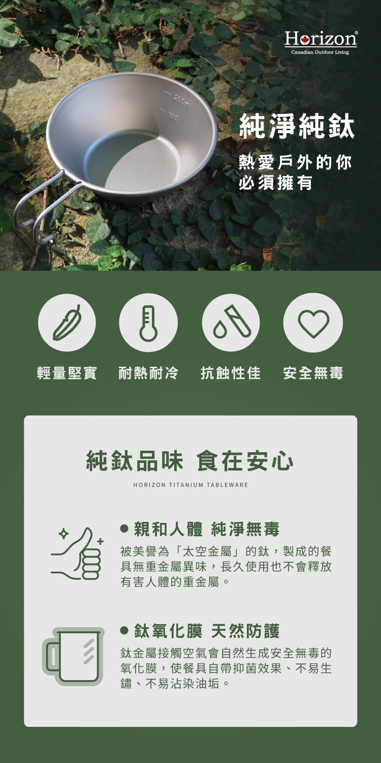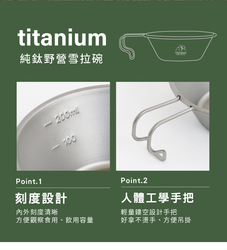 Horizon 天際線 純鈦野營雪拉碗 (300ml/450ml)│雪拉杯│露營碗│握柄牢固不彎折不燙手|登山野營純鈦餐具│好物嚴選