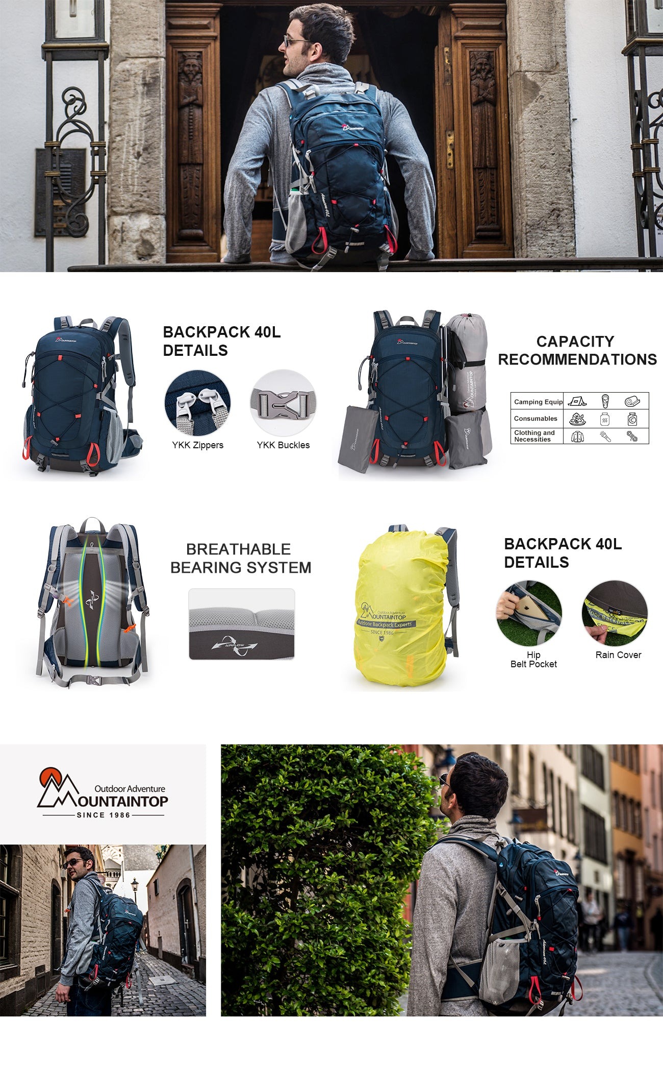 MOUNTAINTOP Unisex Backpack 40L 健行背包 附防雨罩 四色可選