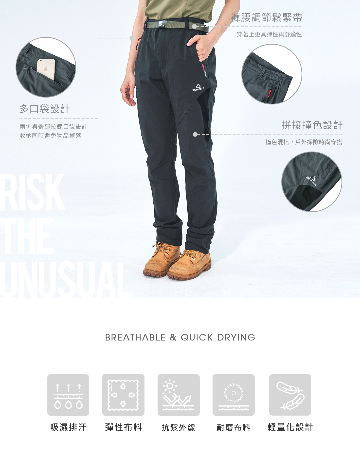 TAKODA 輕量彈性吸濕排汗速乾長褲 女款 鐵灰/黑