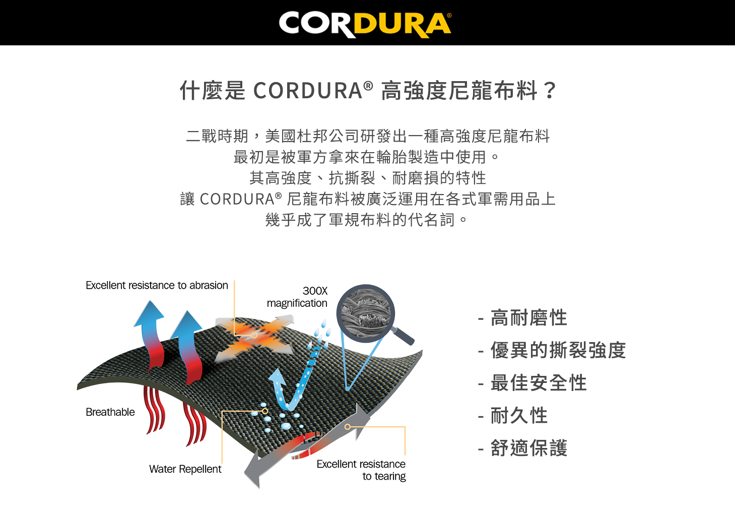 • 【Cordura 高強度面料】良好的耐磨性與抗撕裂性
