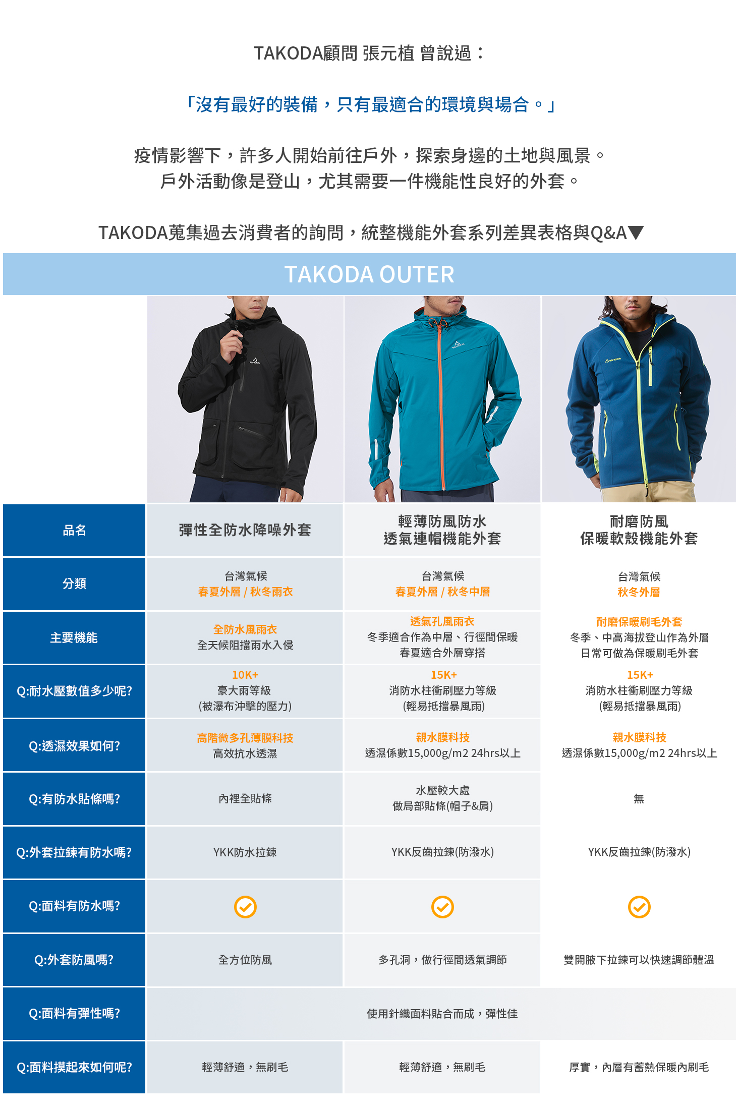- 【防風防水】科技微多孔薄膜,高耐水壓高透溼