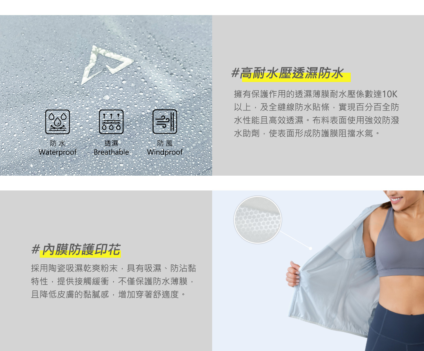 - 【防風防水】科技微多孔薄膜,高耐水壓高透溼