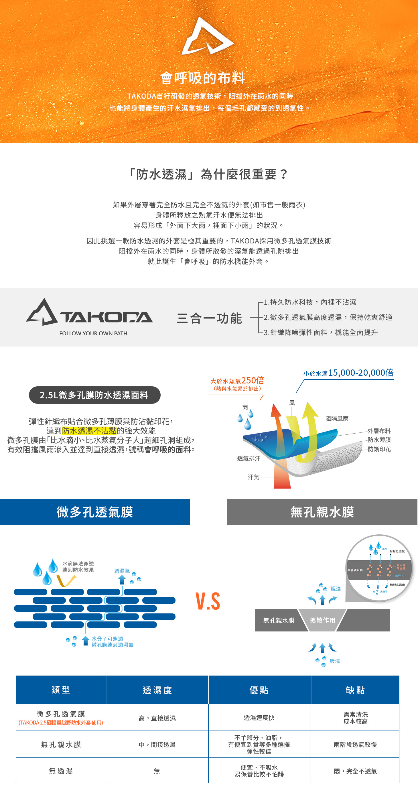 - 【防風防水】科技微多孔薄膜,高耐水壓高透溼