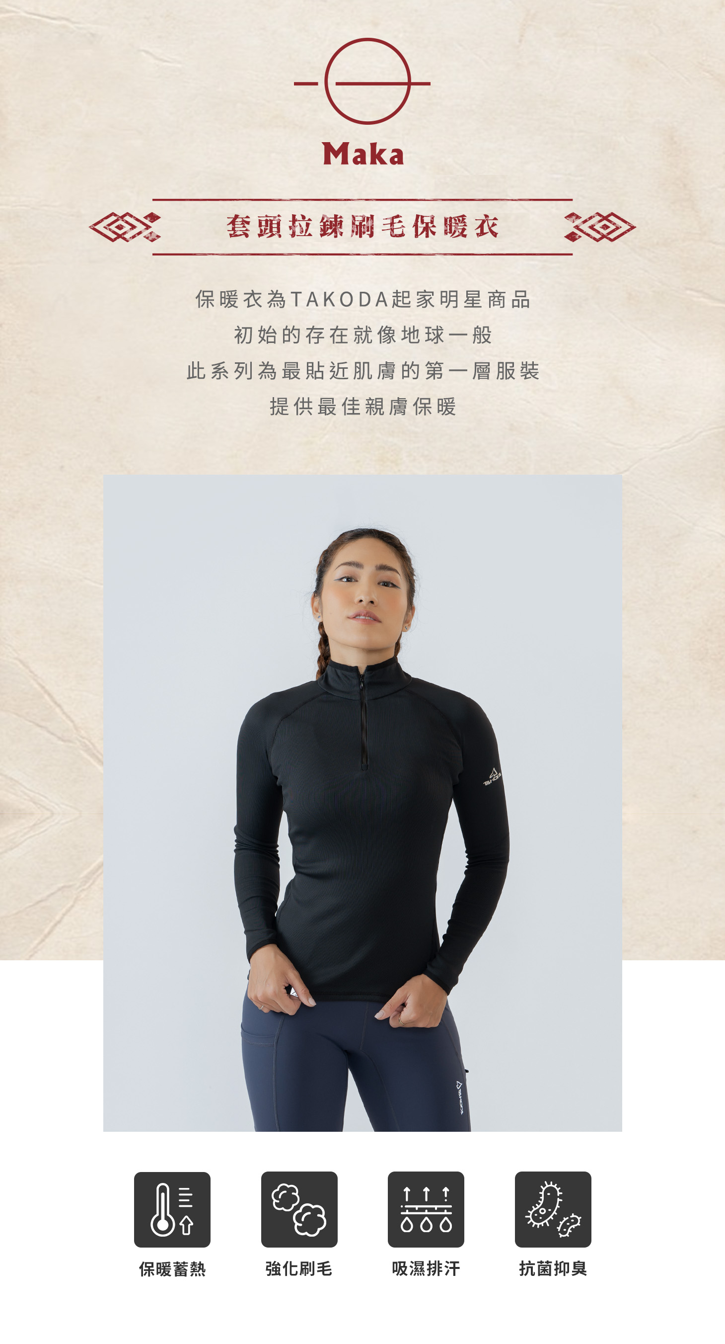 TAKODA Maka 套頭拉鍊刷毛保暖衣 女款 黑/紫/灰/大地棕 四色