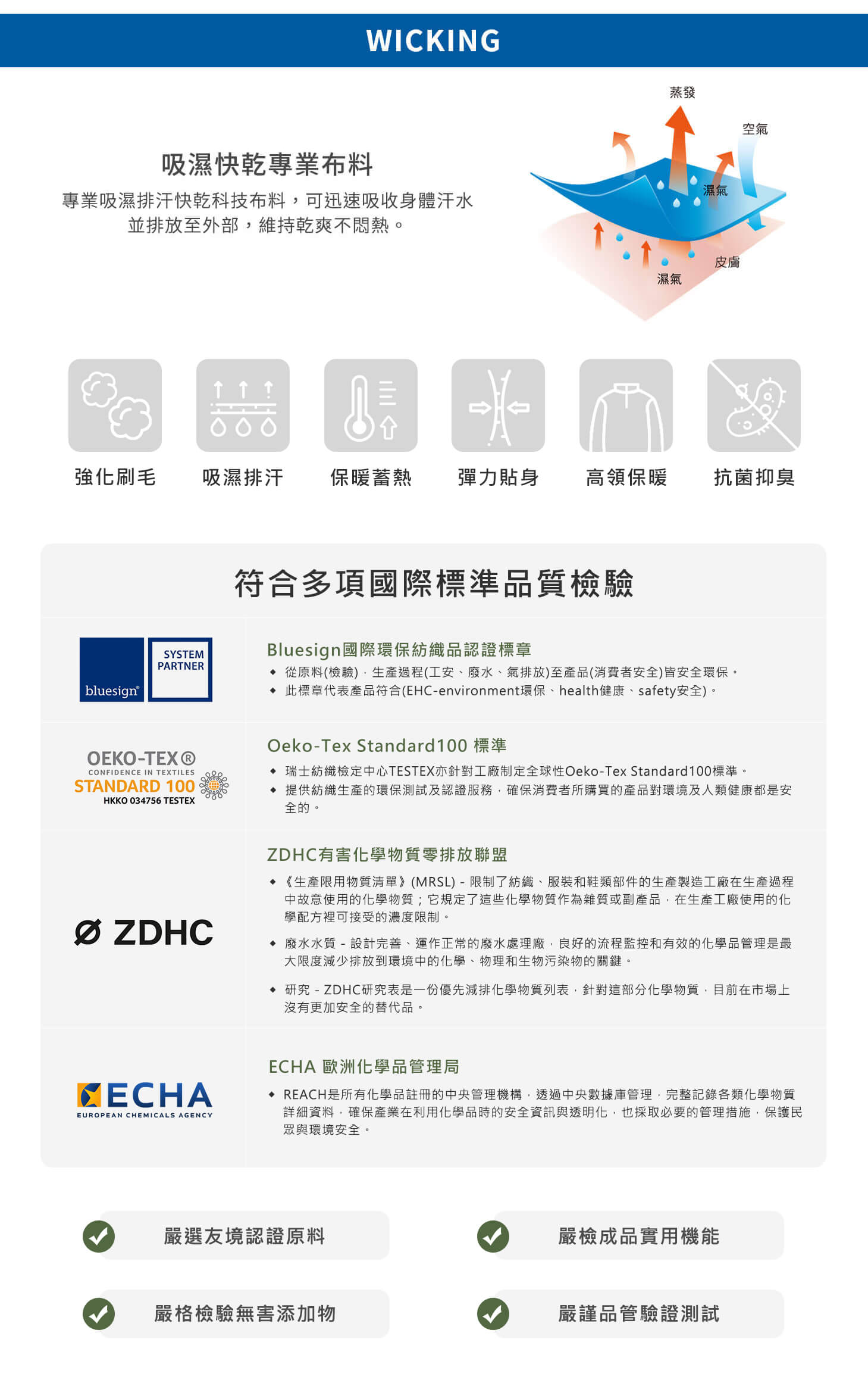 - 【強化刷毛】更強的內層刷毛機能與進化面料