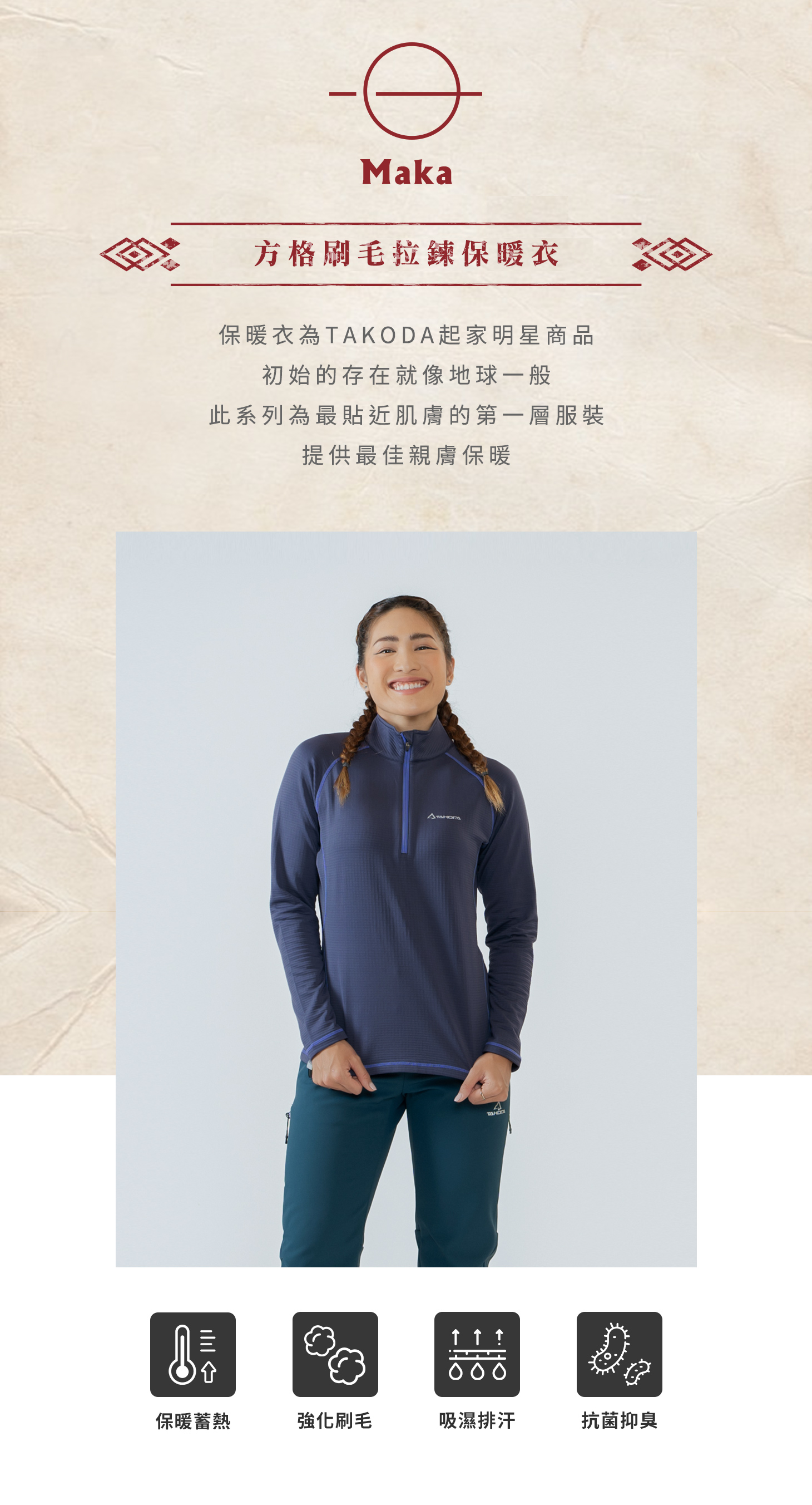 TAKODA Maka 環保方格刷毛拉鍊保暖衣 女款 三色