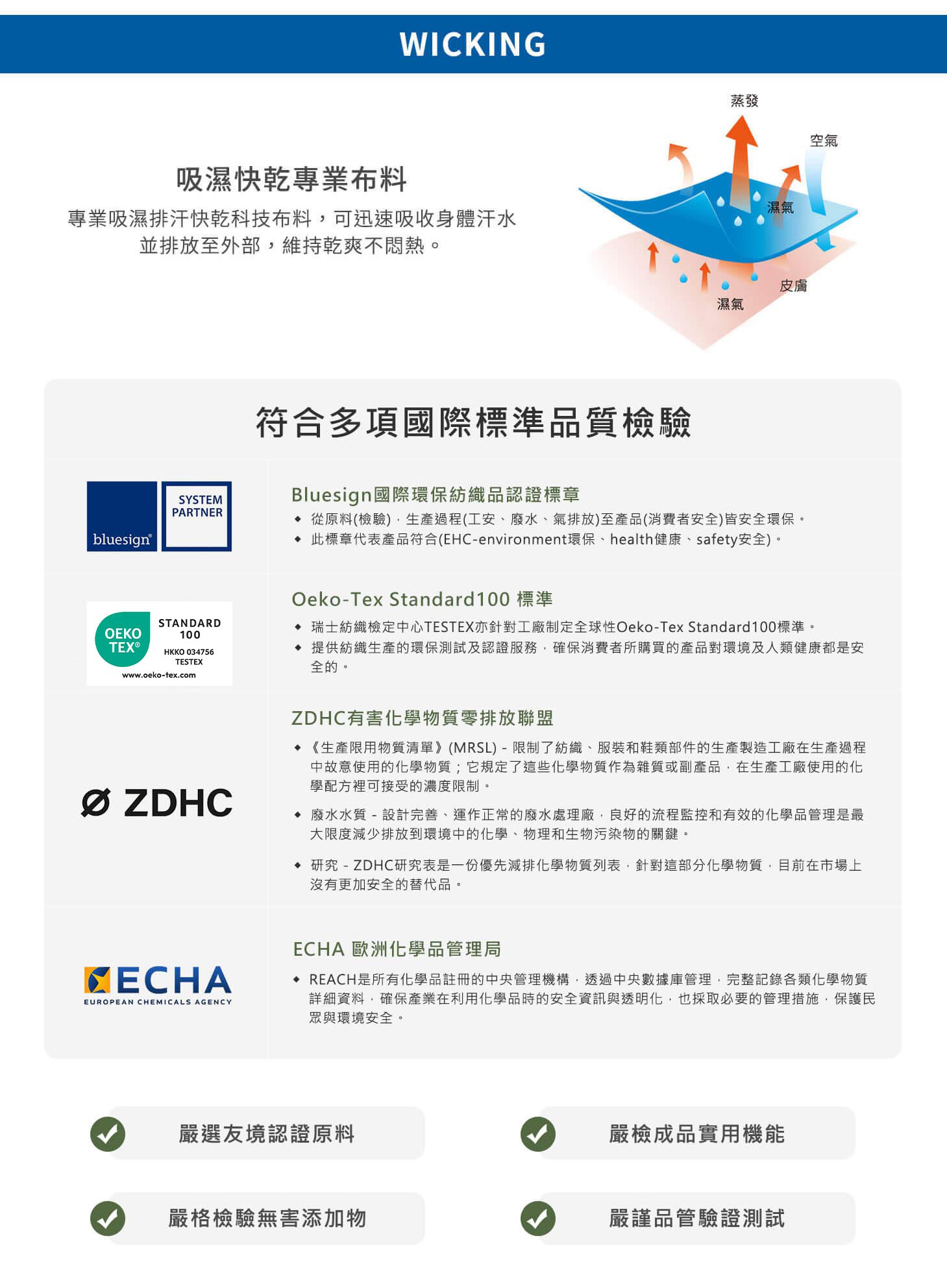 - 【吸濕排汗】能迅速將汗水排出,保持乾爽不悶熱