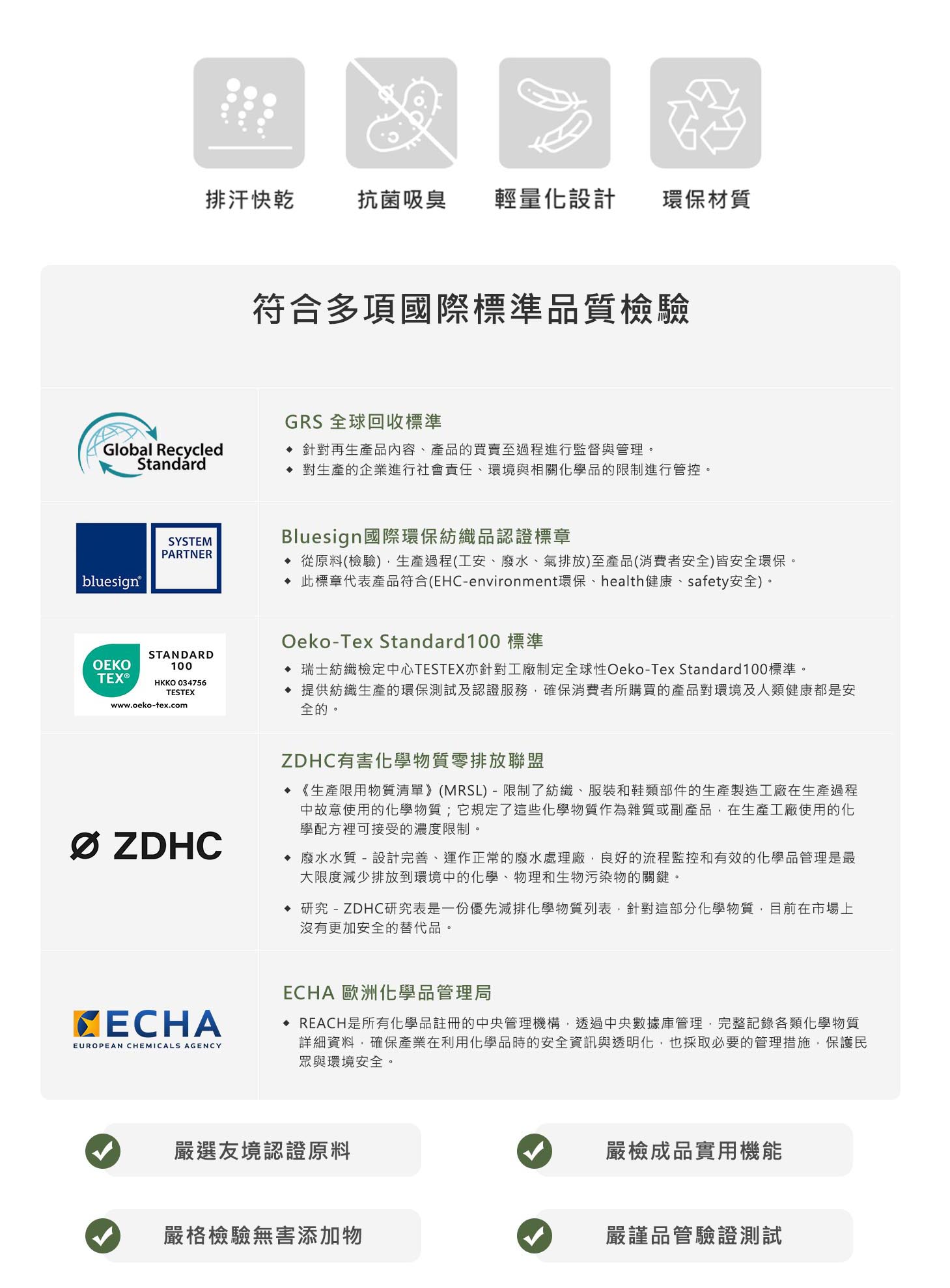 - 【吸濕排汗】具有快乾與吸濕排汗機能