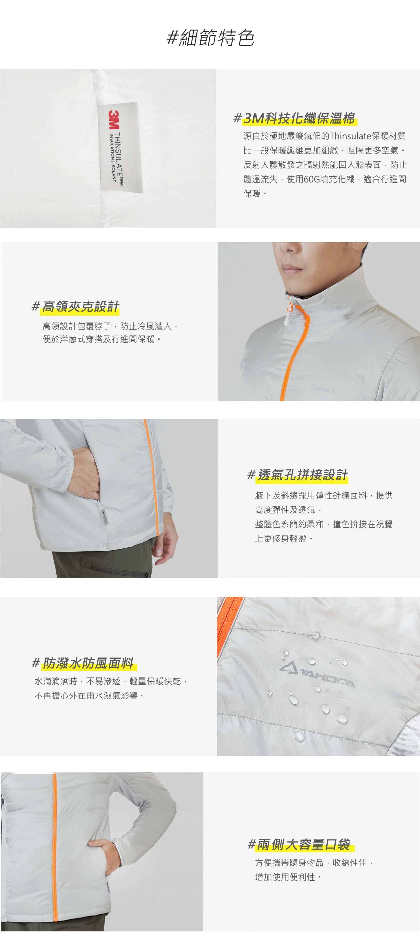 - 【3M科技保溫棉】搭配防潑水防風面料,輕量保暖快乾