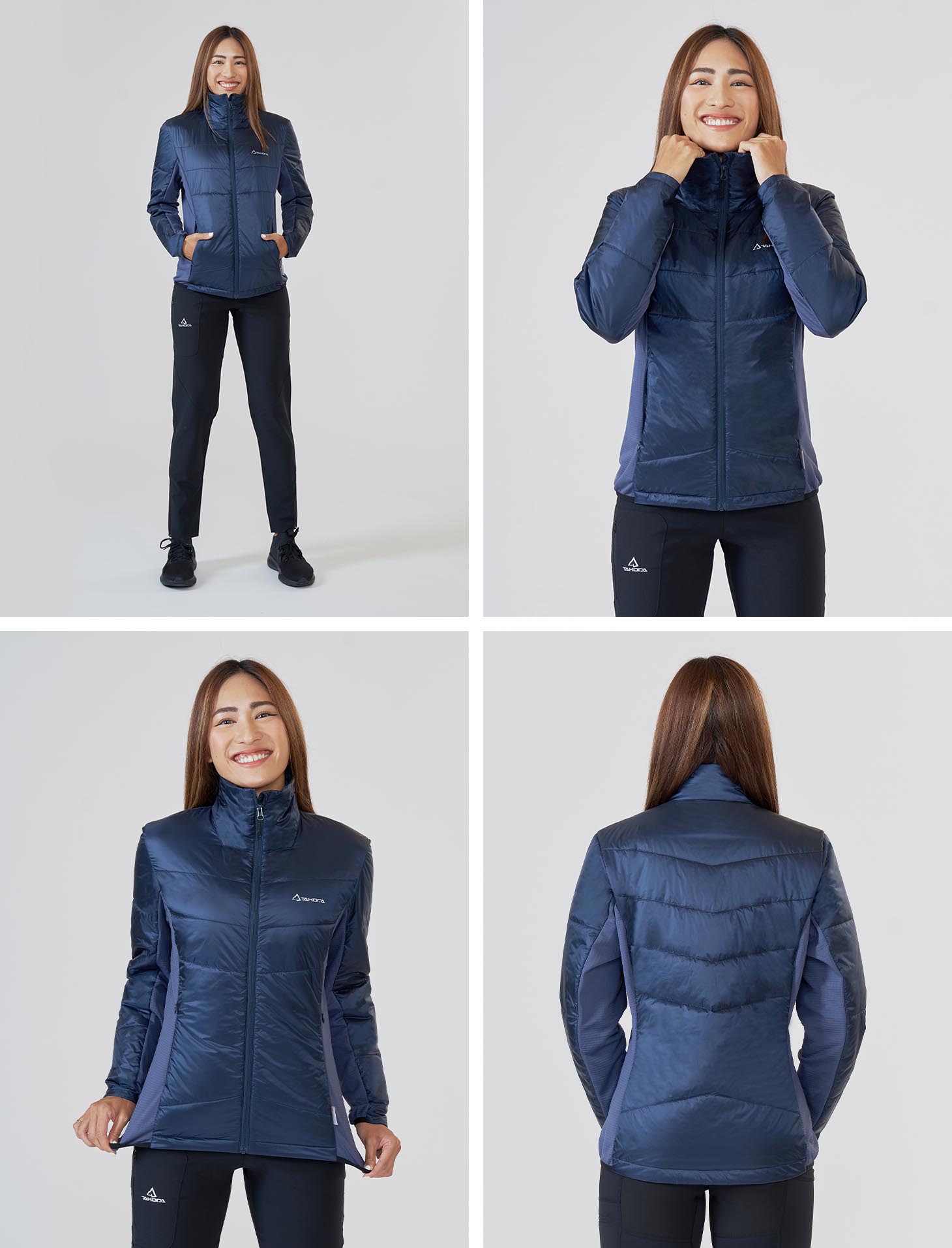 TAKODA Okaga G60輕量保暖科技棉立領外套 女款 雲灰色/深海藍