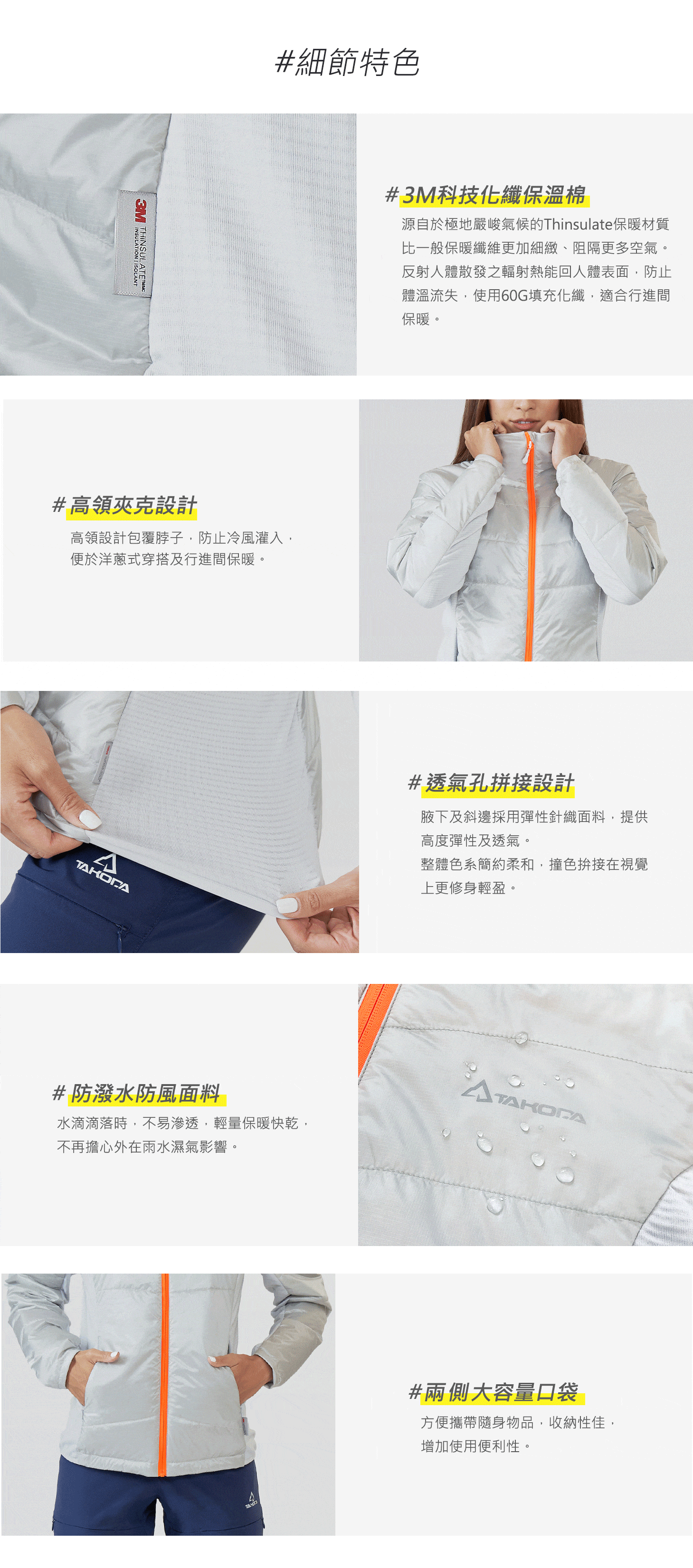 - 【3M科技保溫棉】搭配防潑水防風面料,輕量保暖快乾