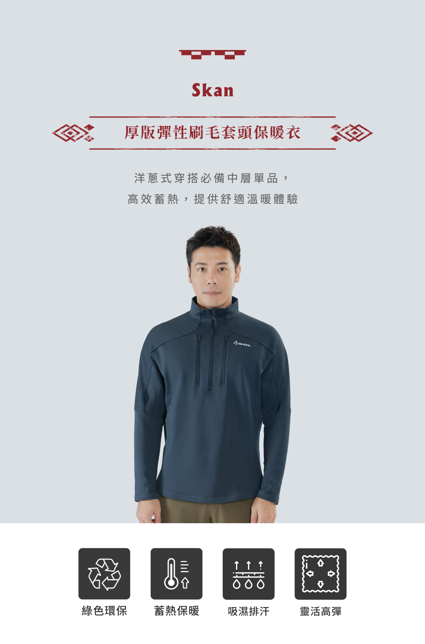 TAKODA Skan 厚版彈性刷毛套頭保暖衣 男款 兩色