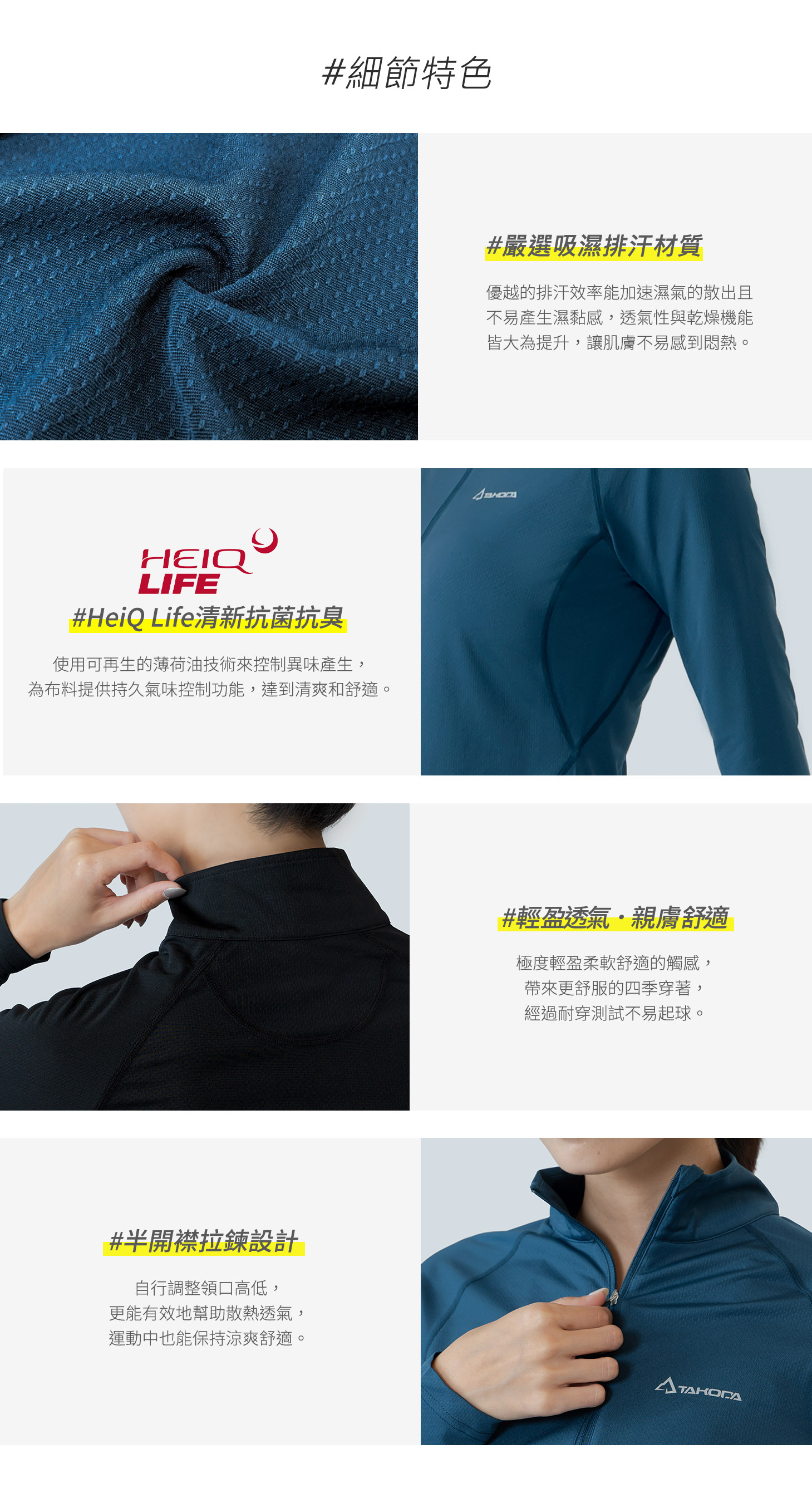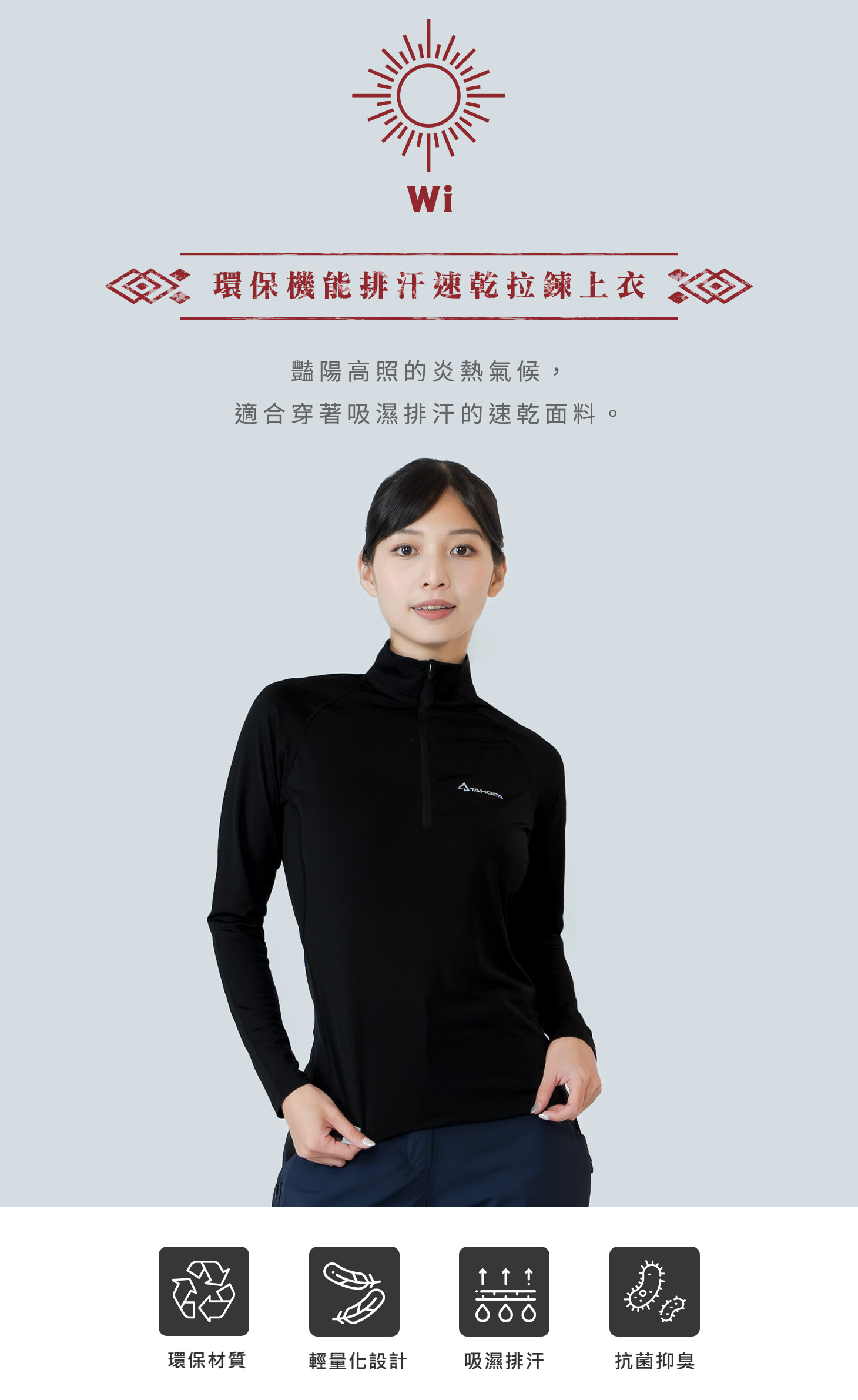 TAKODA Wi 環保機能輕量排汗速乾拉鍊上衣 女款 兩色