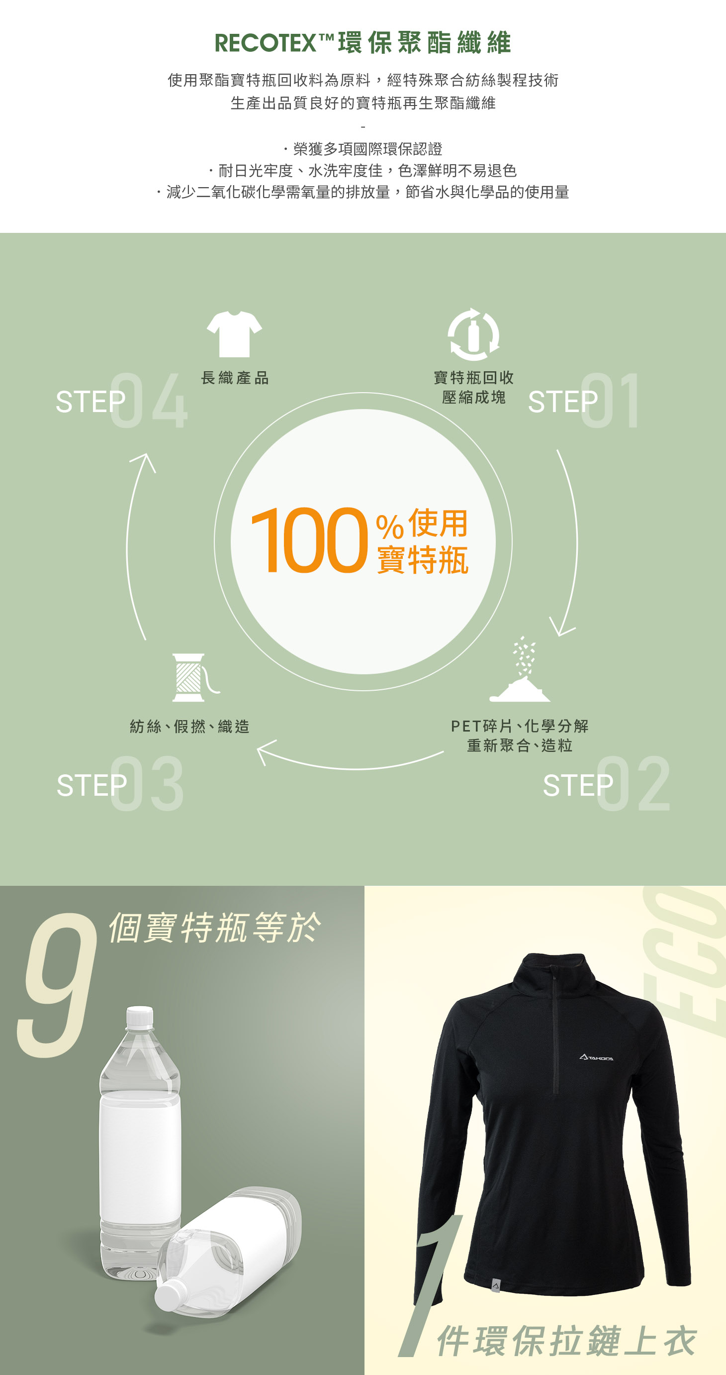 - 【綠色環保】使用100%寶特瓶回收紗
