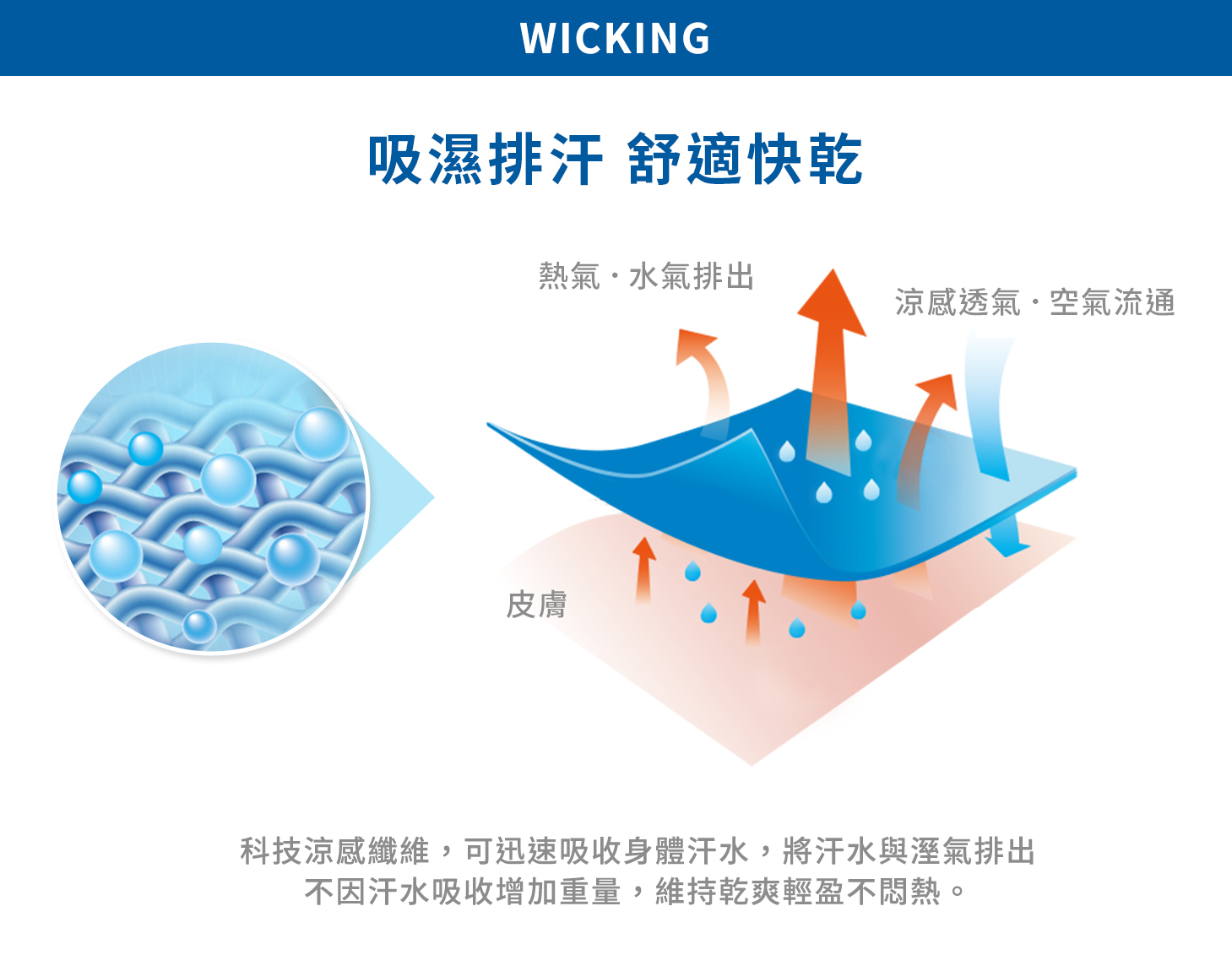 - 【排汗速乾】優異的吸濕排汗機能、快乾不黏身