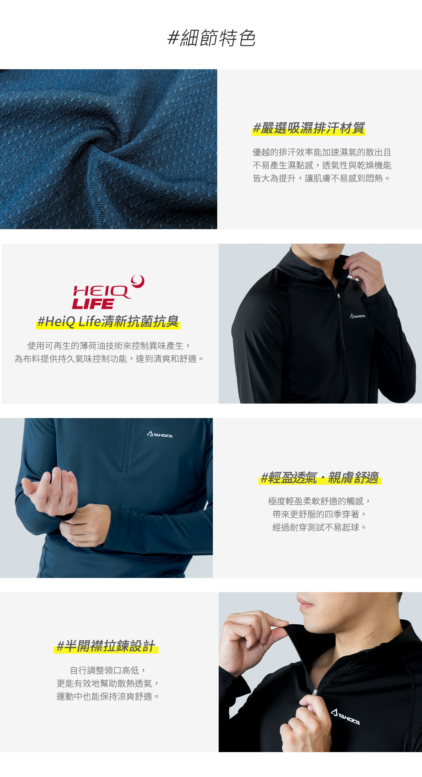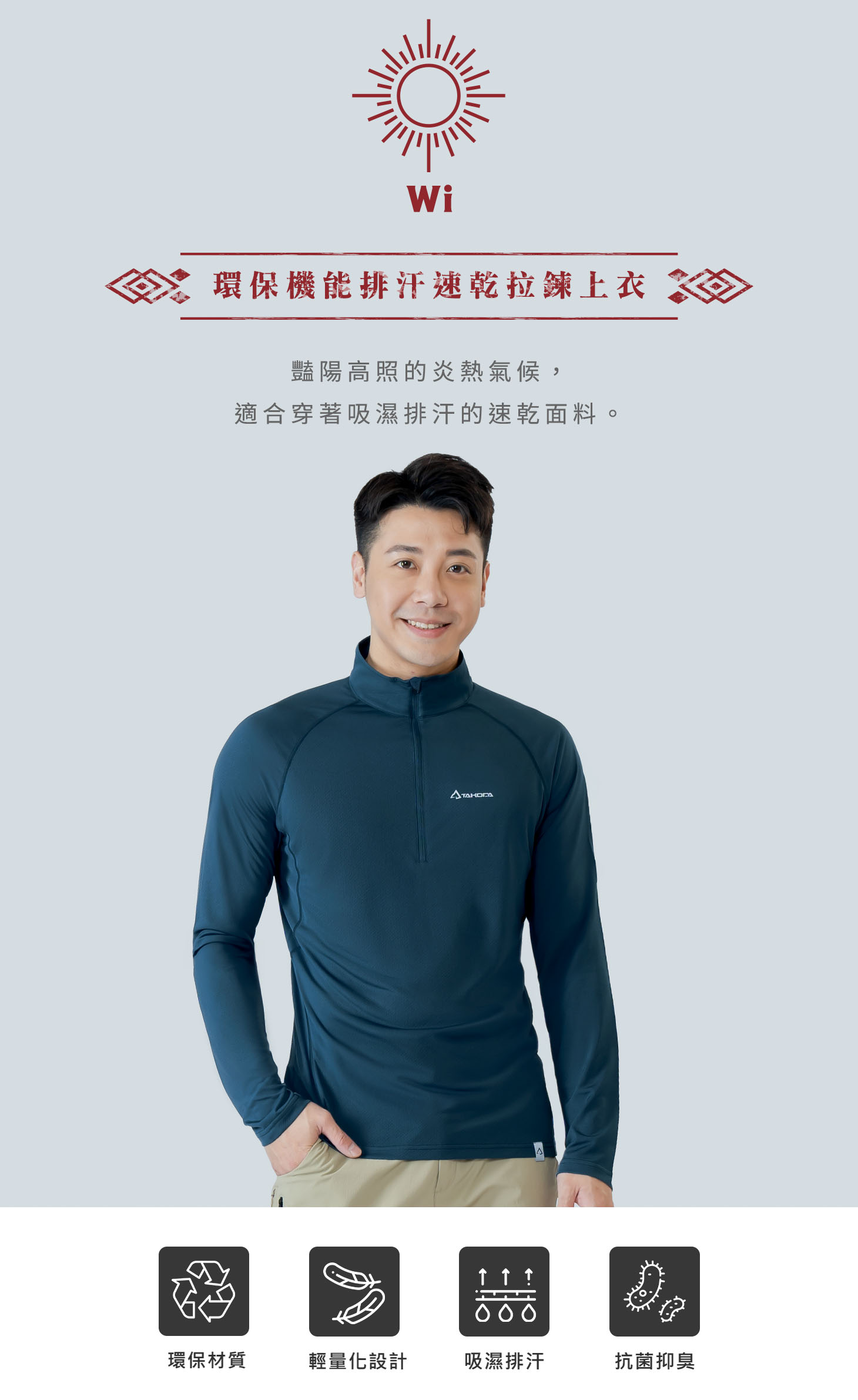TAKODA Wi 環保機能輕量排汗速乾拉鍊上衣 男款 兩色