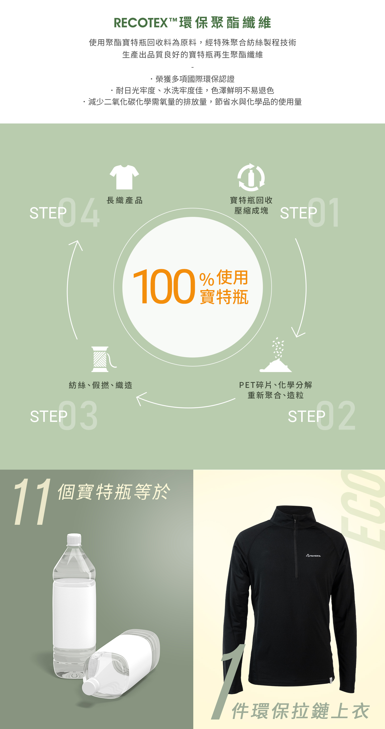 - 【綠色環保】使用100%寶特瓶回收紗
