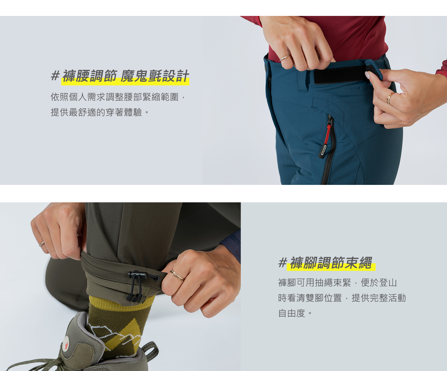 - 【褲腳調節束繩】可依個人需求適當地調整褲長