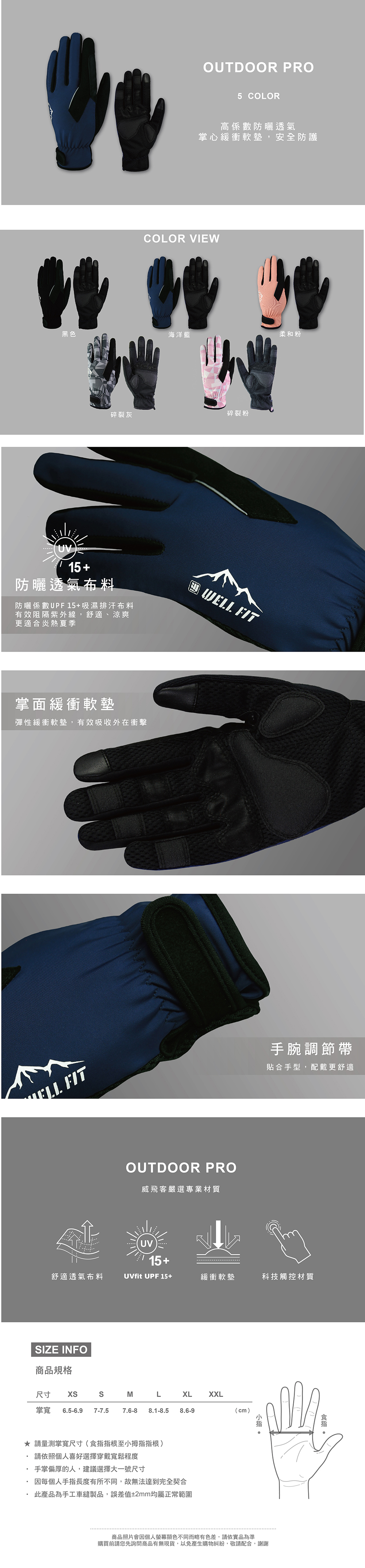 WELL FIT 多功能戶外手套OUTDOOR PRO|登山|騎乘|釣魚|透氣|防曬