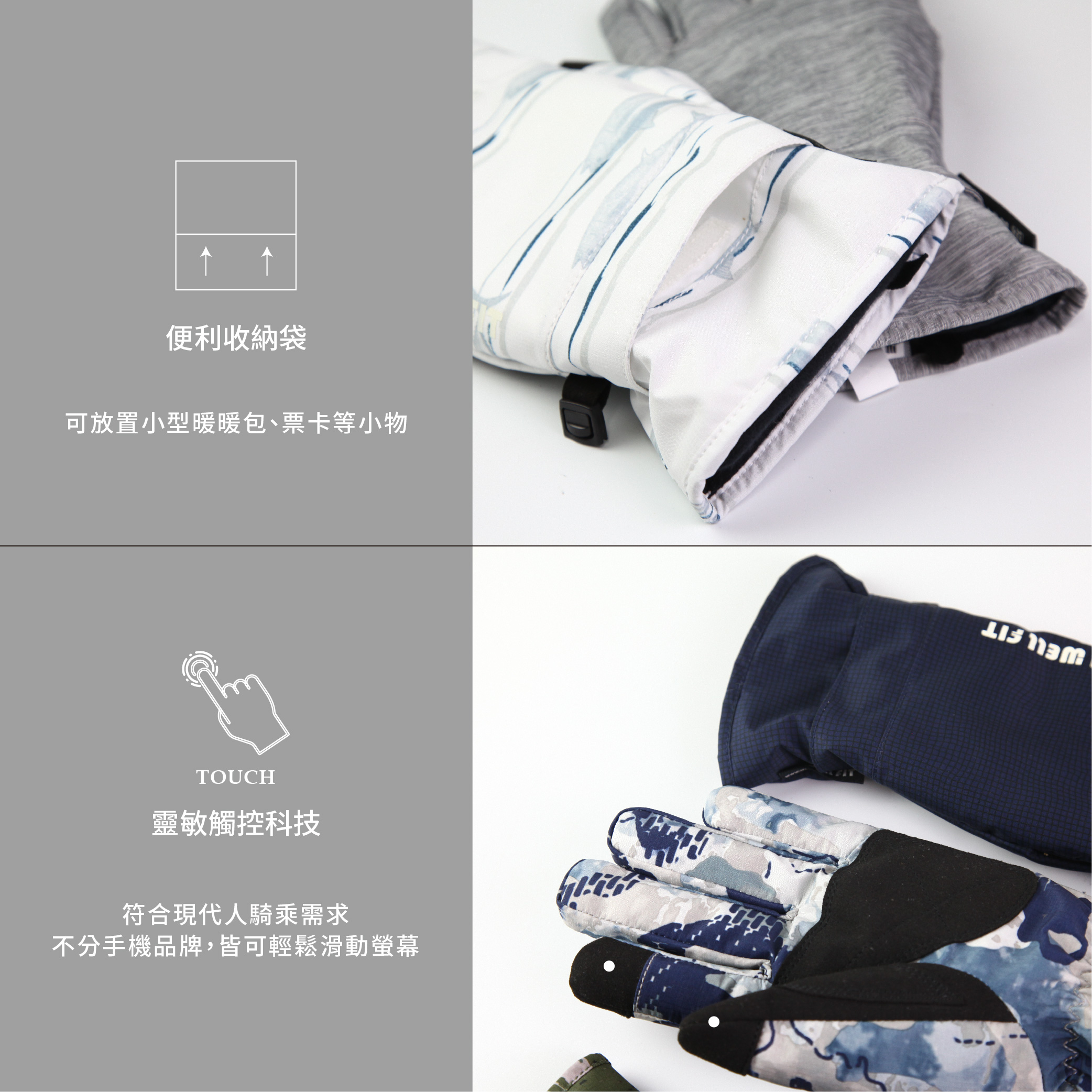材質 : 防潑水布/HYDRO-TEX防水套/3M Extra Warmth保暖棉