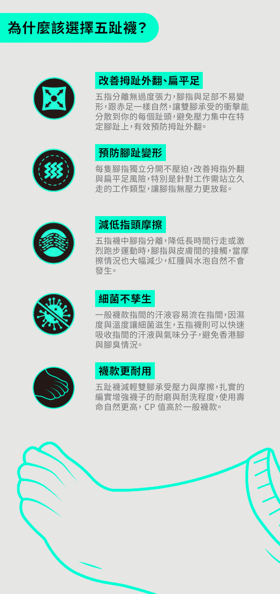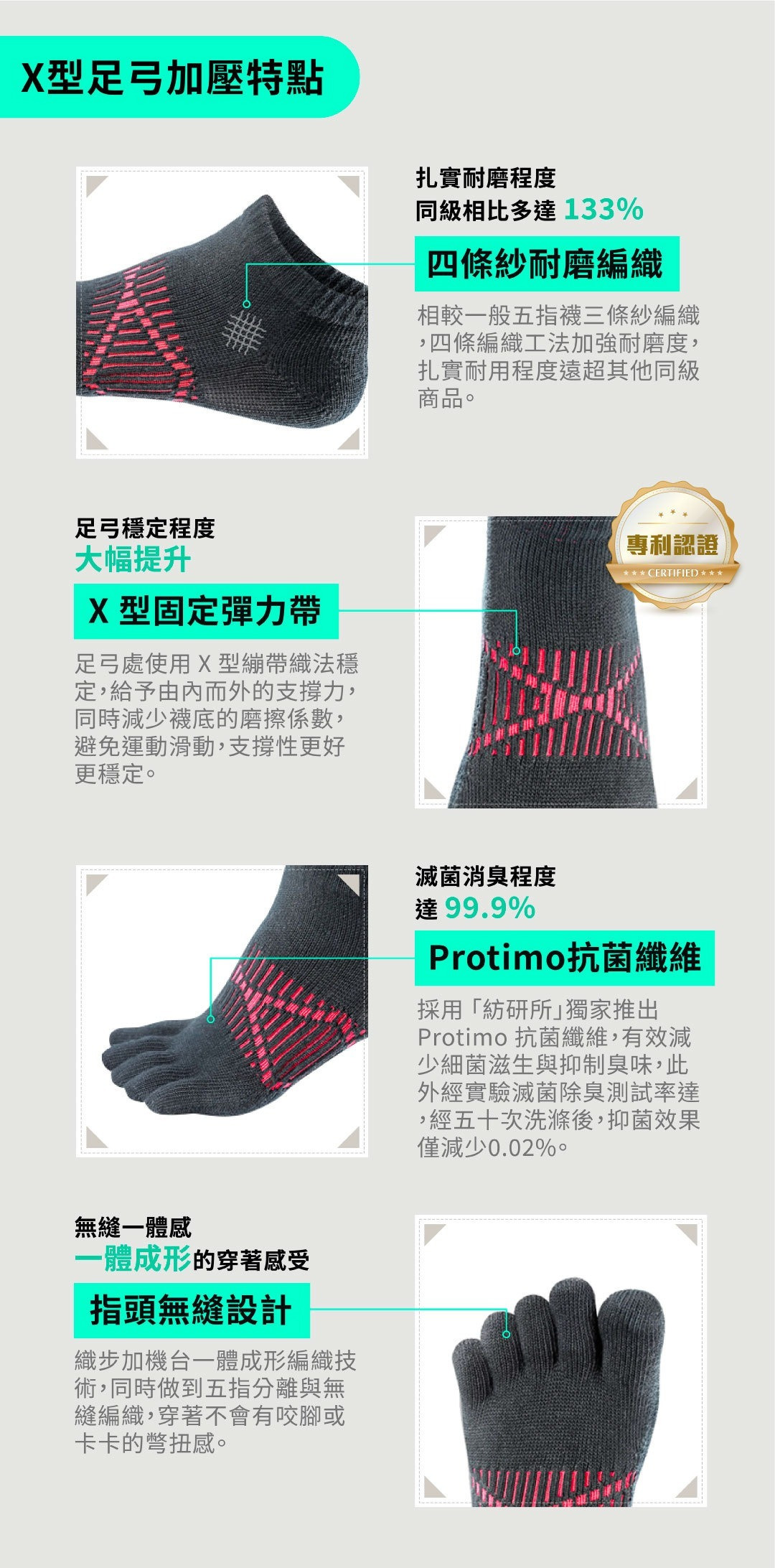 X型足弓加壓五指襪